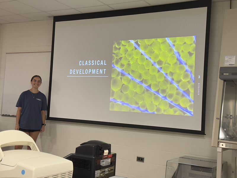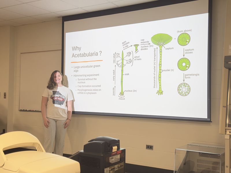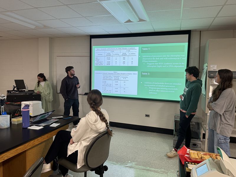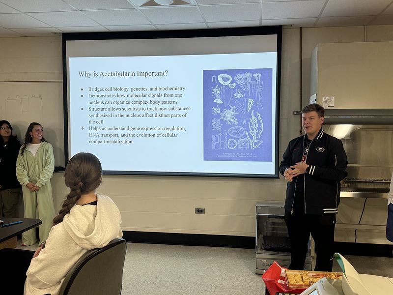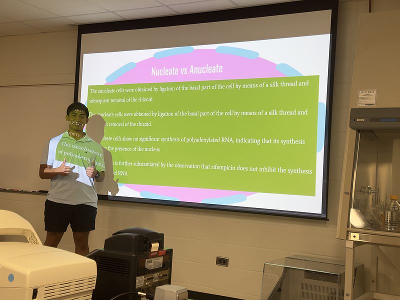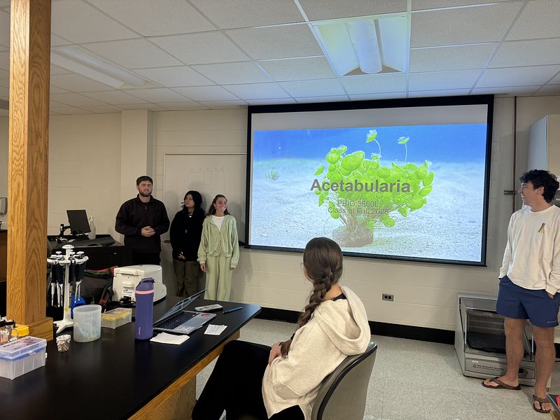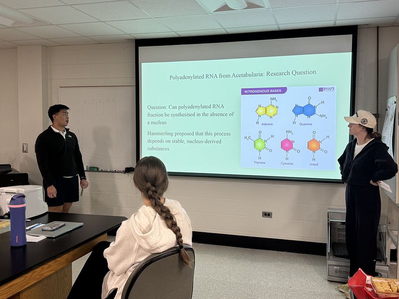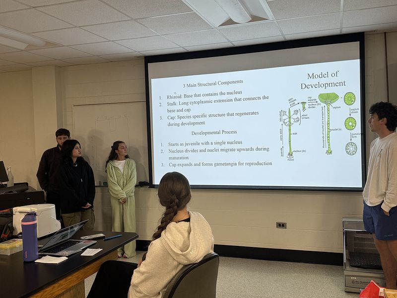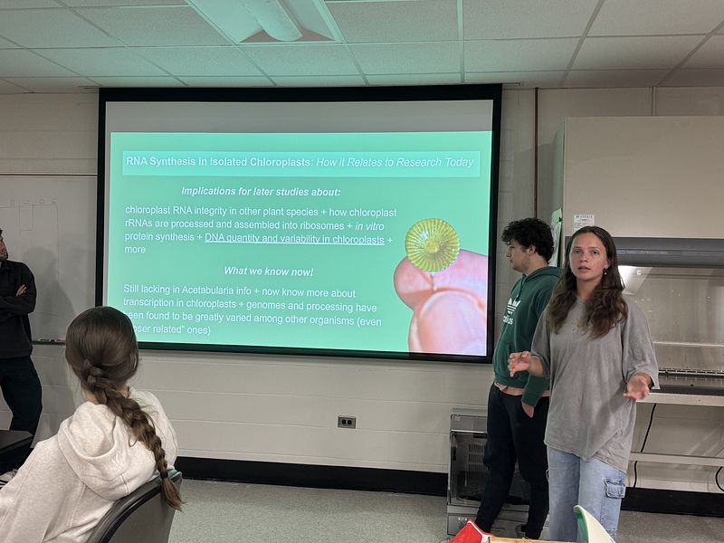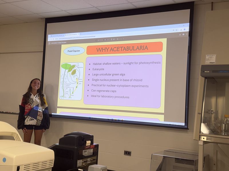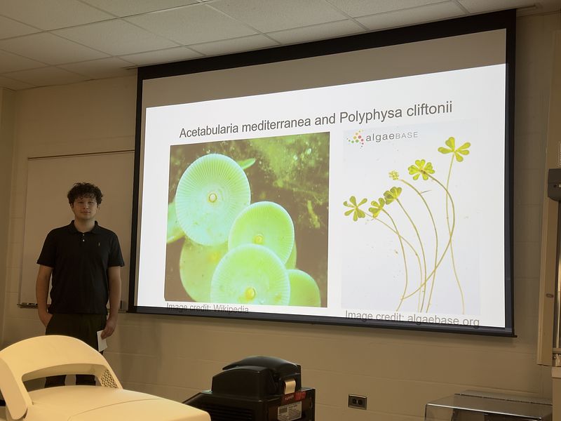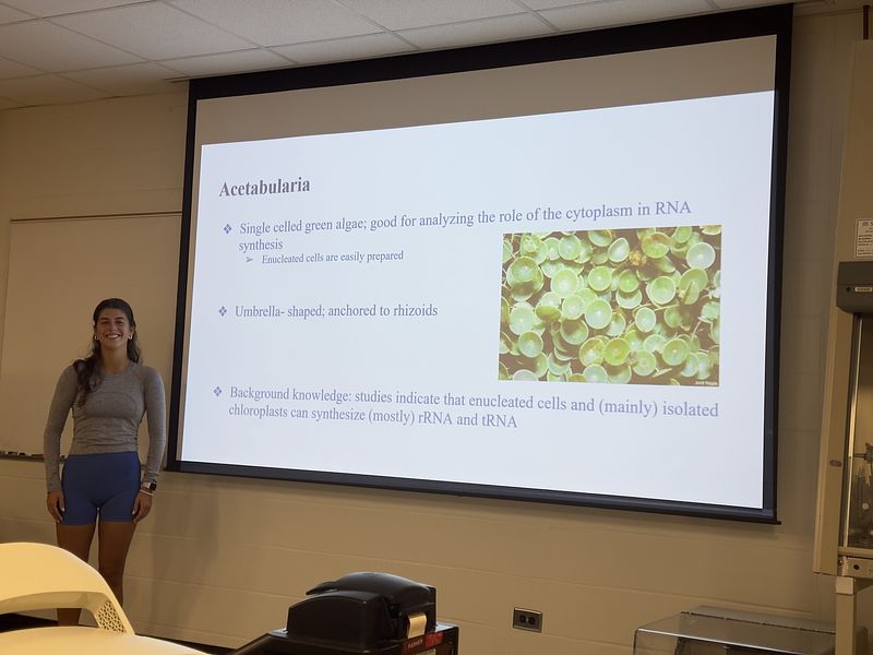 This semester, the student cohort worked on two independent projects: one focused on isolating and analyzing environmental DNA (eDNA), and the other on sequencing and assembling the transcriptome, chloroplast, and mitochondrial genomes of Acetabularia. They are presenting their research along with selected readings, as shown in the picture gallery below. It was a truly exceptional group—collaborative, supportive, and consistently stepping in to help one another throughout the course.